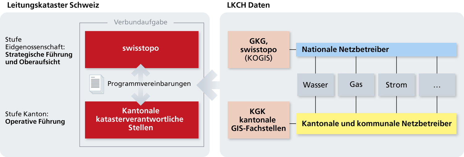 Der Leitungskataster Schweiz soll als Verbundaufgabe geführt werden, mit organisatorischen und finanziellen Auswirkungen auf Bund und Kantone.